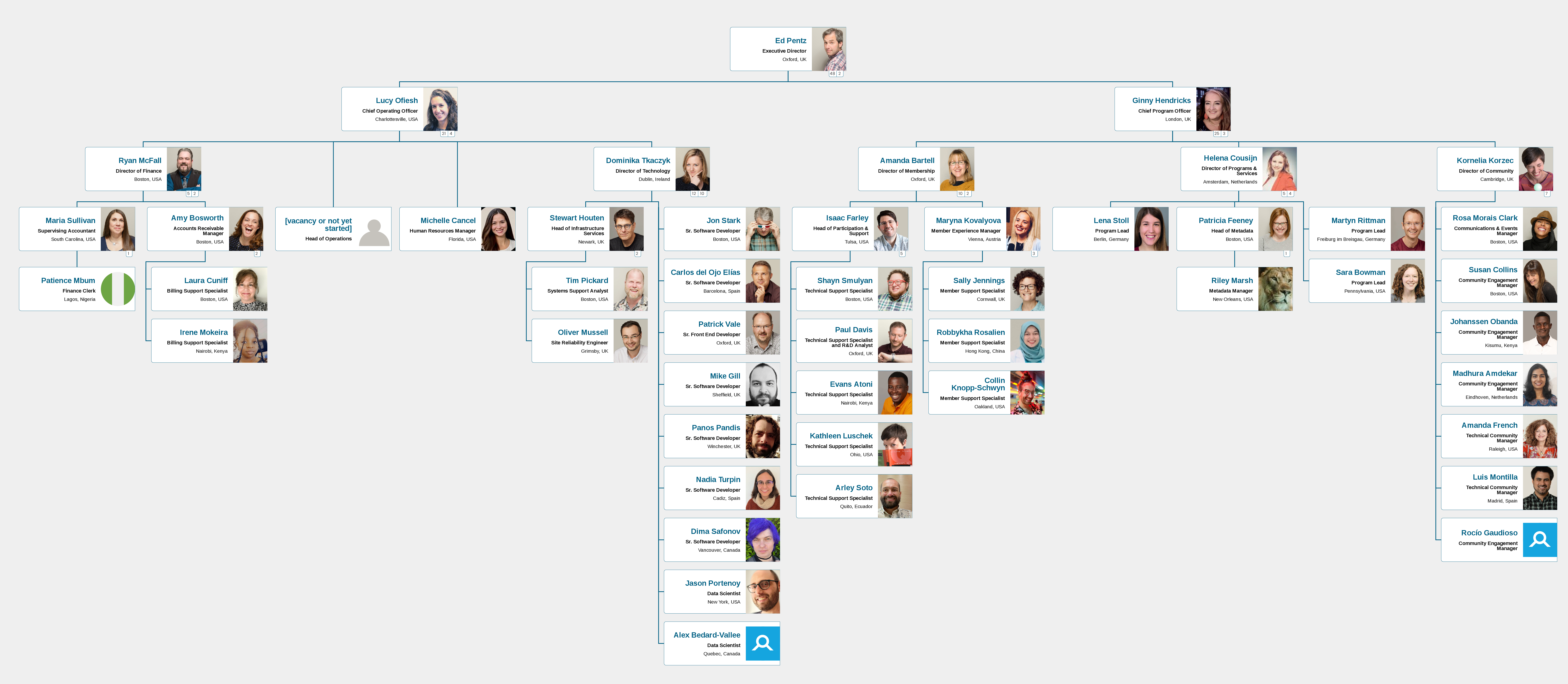 Here is our organisational chart to show our team; an interactive version is available too. Also take a look at our people directory and click through to read about each of our roles and areas of responsibility.